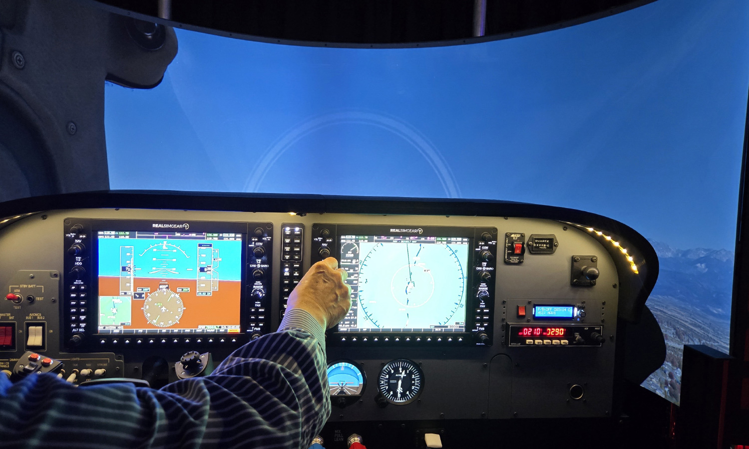 シムピットスクリーンと本格的なコックピット筐体を使ったシミュレーターで、ご自由にフライトを楽しめます。