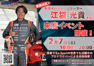 2月23日(月/祝)レーシングドライバー の塩津佑介さん がシムピットストアに来店します!
