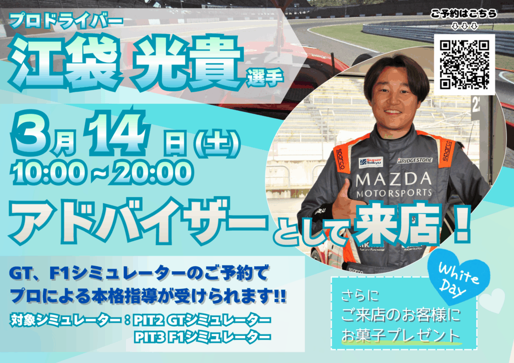 3月14日(土)10:00~20:00 、江袋 光貴選手がアドバイザーとして来店します。